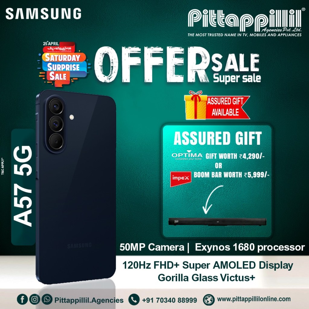 One of the best reasons to buy Samsung Galaxy A57 5G at Pittappillil Agencies is the attractive offers: